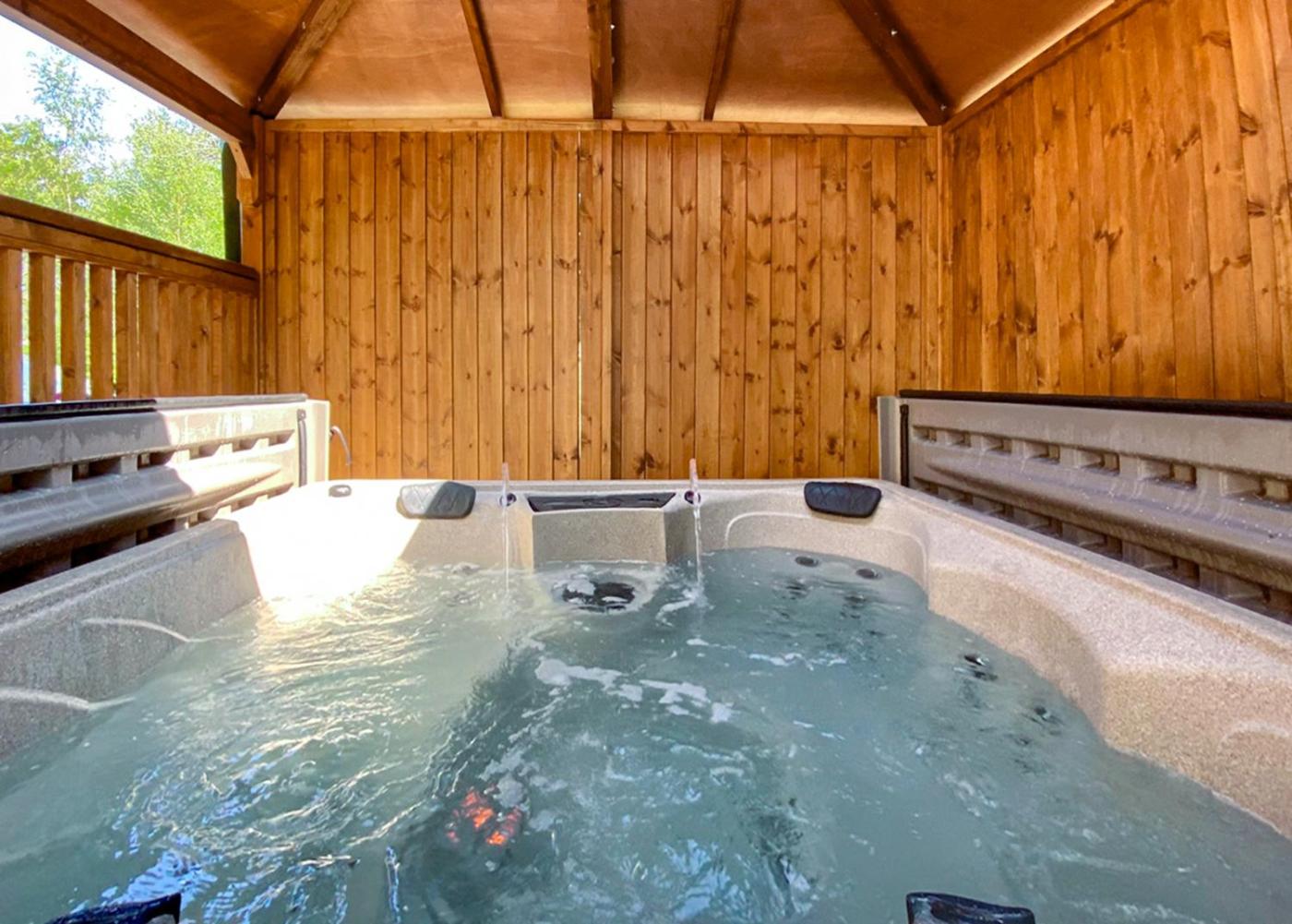 Two-Bedroom Holiday Home 2. This holiday homes special feature is the hot tub. In the fully equipped kitchen, guests will find a stovetop, a refrigerator, kitchenware and an oven. The holiday home provides heating, as well as a private bathroom featuring a shower.
