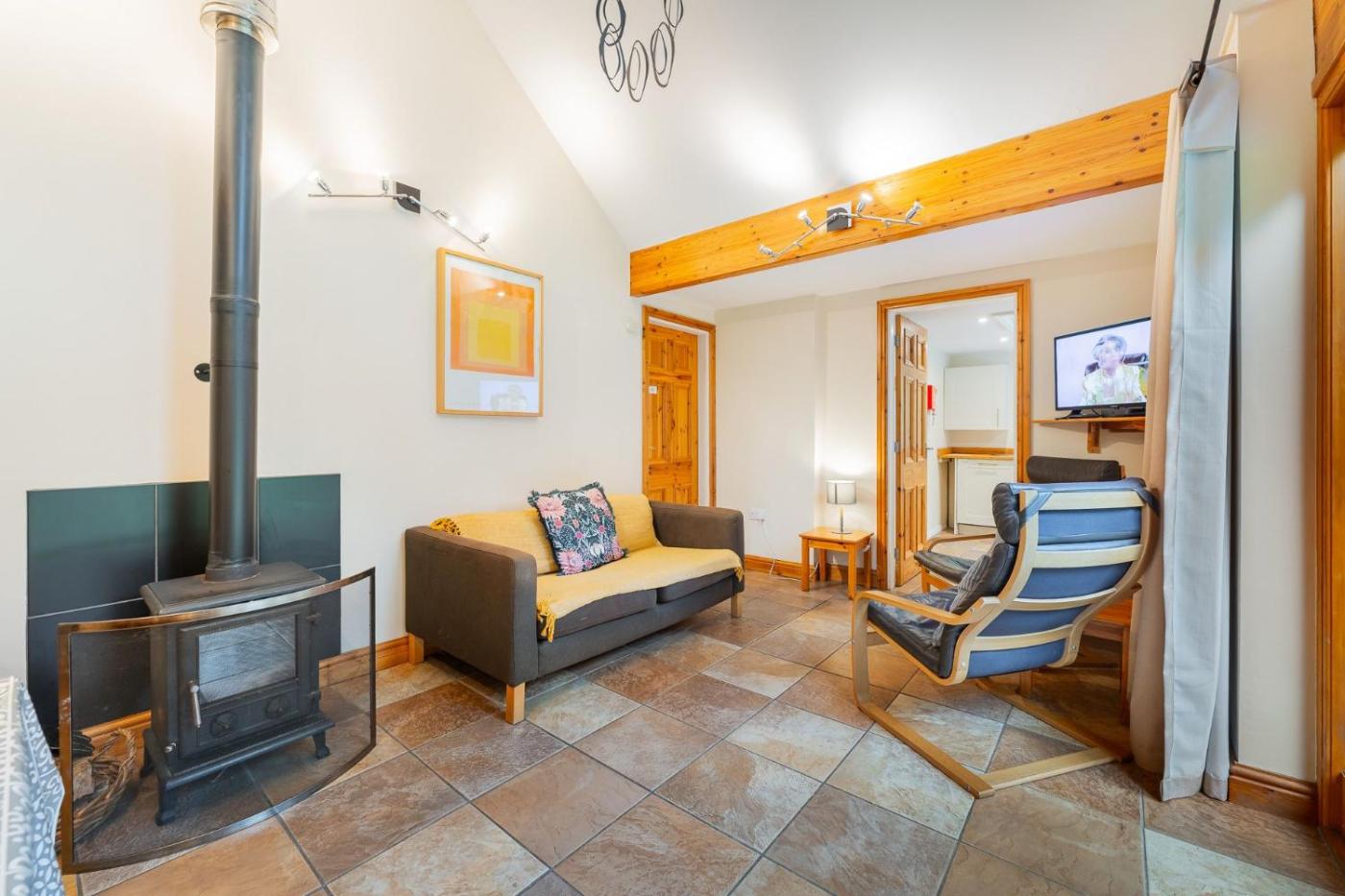 Holiday Home. Guests will have a special experience as this holiday home features a fireplace. This holiday home is comprised of 1 living room, 2 separate bedrooms and 1 bathroom with a shower. In the kitchen, guests will find a stovetop, a refrigerator, a dishwasher and an oven. Featuring outdoor furniture, this holiday home also offers a coffee machine, heating and a TV. The unit offers 3 beds.