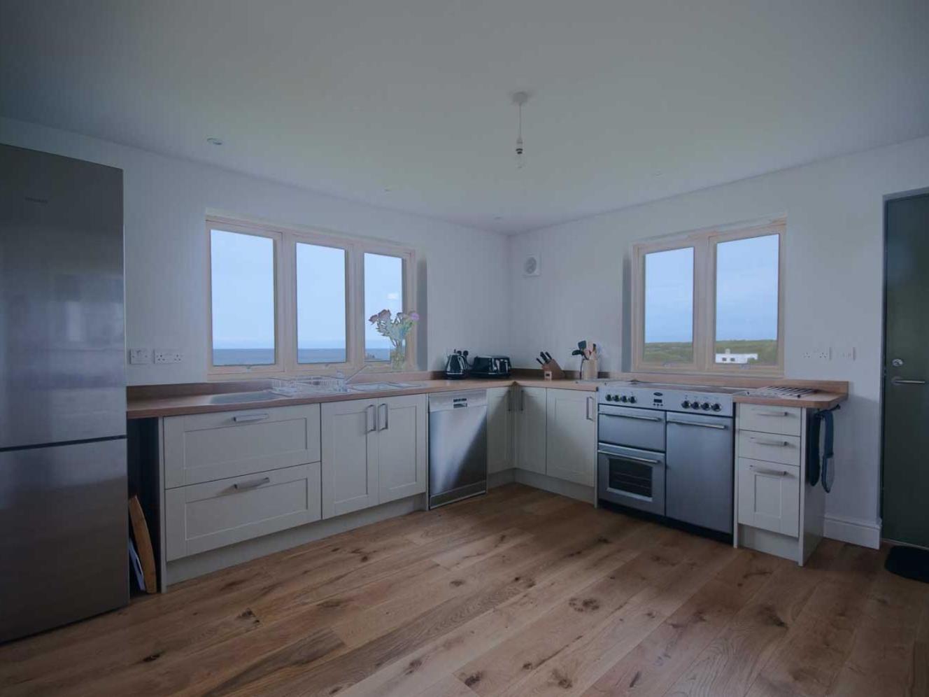 Holiday Home. This holiday homes special feature is the fireplace. This spacious holiday home comprises 4 bedrooms, a seating area with a sofa and 3 bathrooms with a walk-in shower. The fully equipped kitchen features a stovetop, a refrigerator, a dishwasher and an oven. Among the room amenities are a washing machine, a dining area and a wardrobe as well as sea views.