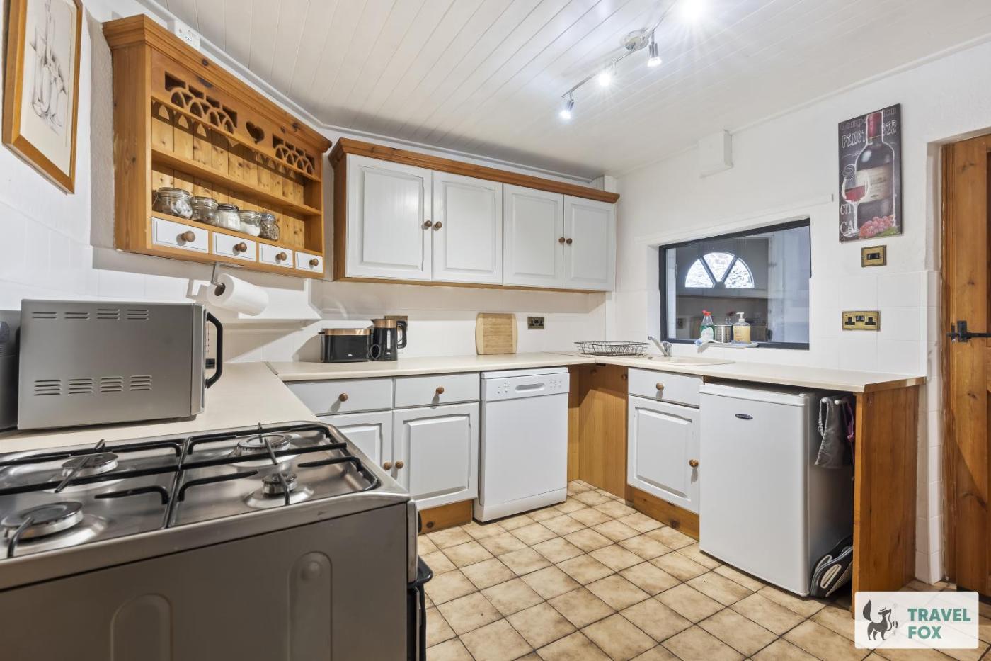 Two-Bedroom House. The fireplace is a top feature of this holiday home. Boasting a private entrance, this holiday home also comes with 2 bedrooms, a seating area and 1 bathroom with a bath and a shower. The well-fitted kitchen has a stovetop, a refrigerator, a dishwasher and an oven. Featuring a patio, this holiday home also features a dining area, an electric kettle and a flat-screen TV. The unit has 3 beds.