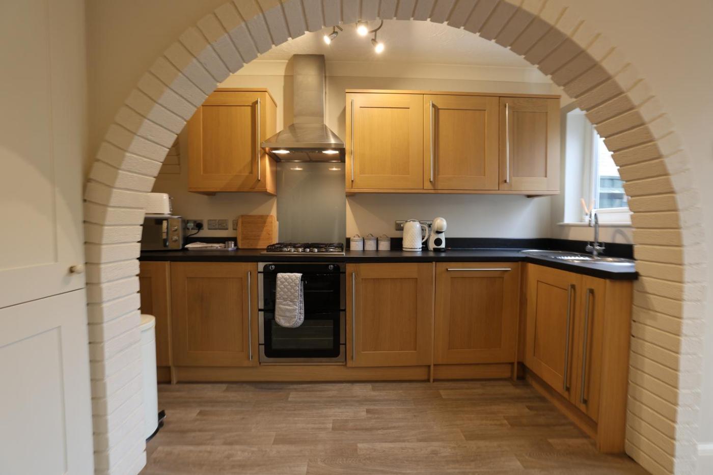 This holiday home features 2 bedrooms, a kitchen with a dishwasher and an oven, a flat-screen TV, a seating area and 1 bathroom fitted with a bath. Towels and bed linen are available in the holiday home. The property has an outdoor dining area.